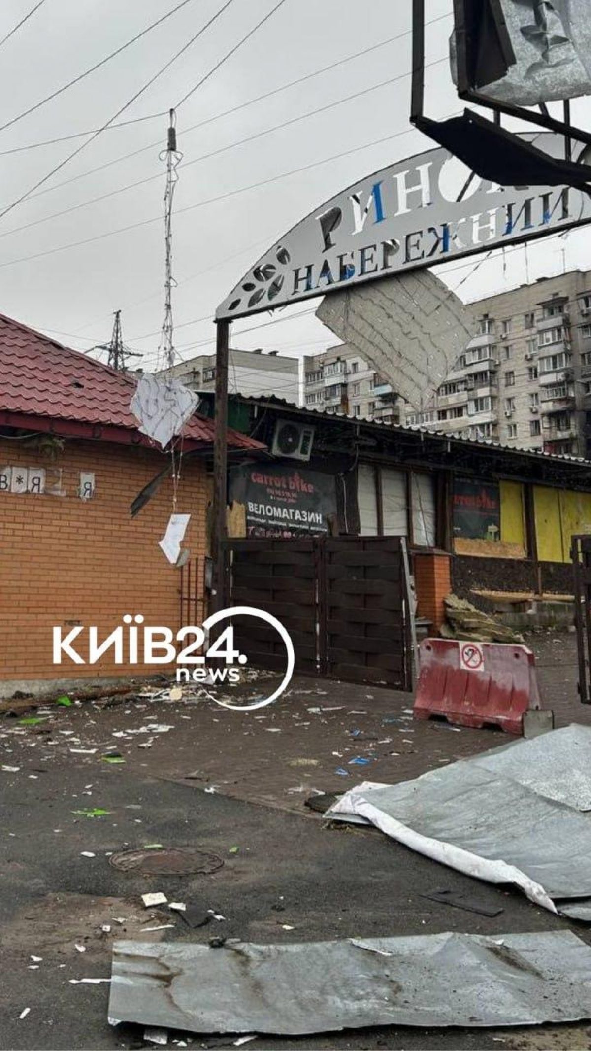 Канал Киев24 показал фото последствий российского удара по Вышгороду. Отмечается, что там поврежден рынок "Набережный", автомойка, многоэтажка и дорога.