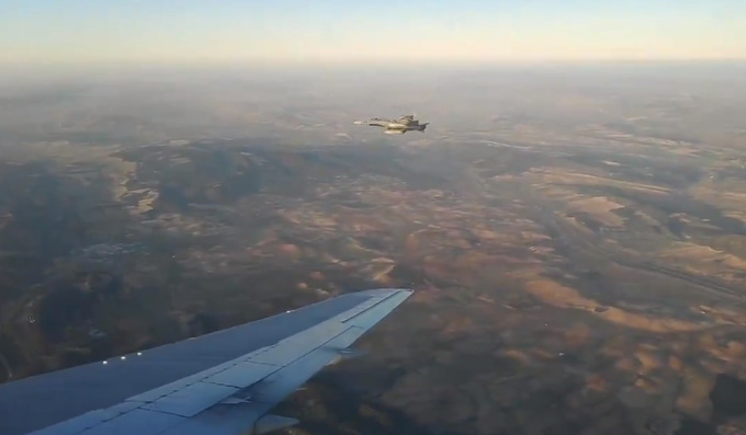 ▪️ Uno de los tripulantes del #AC837 Air Canada de muestra la marcha del caza F18 Hornet tras revisar los bajos del avión y hablar con el comandante.