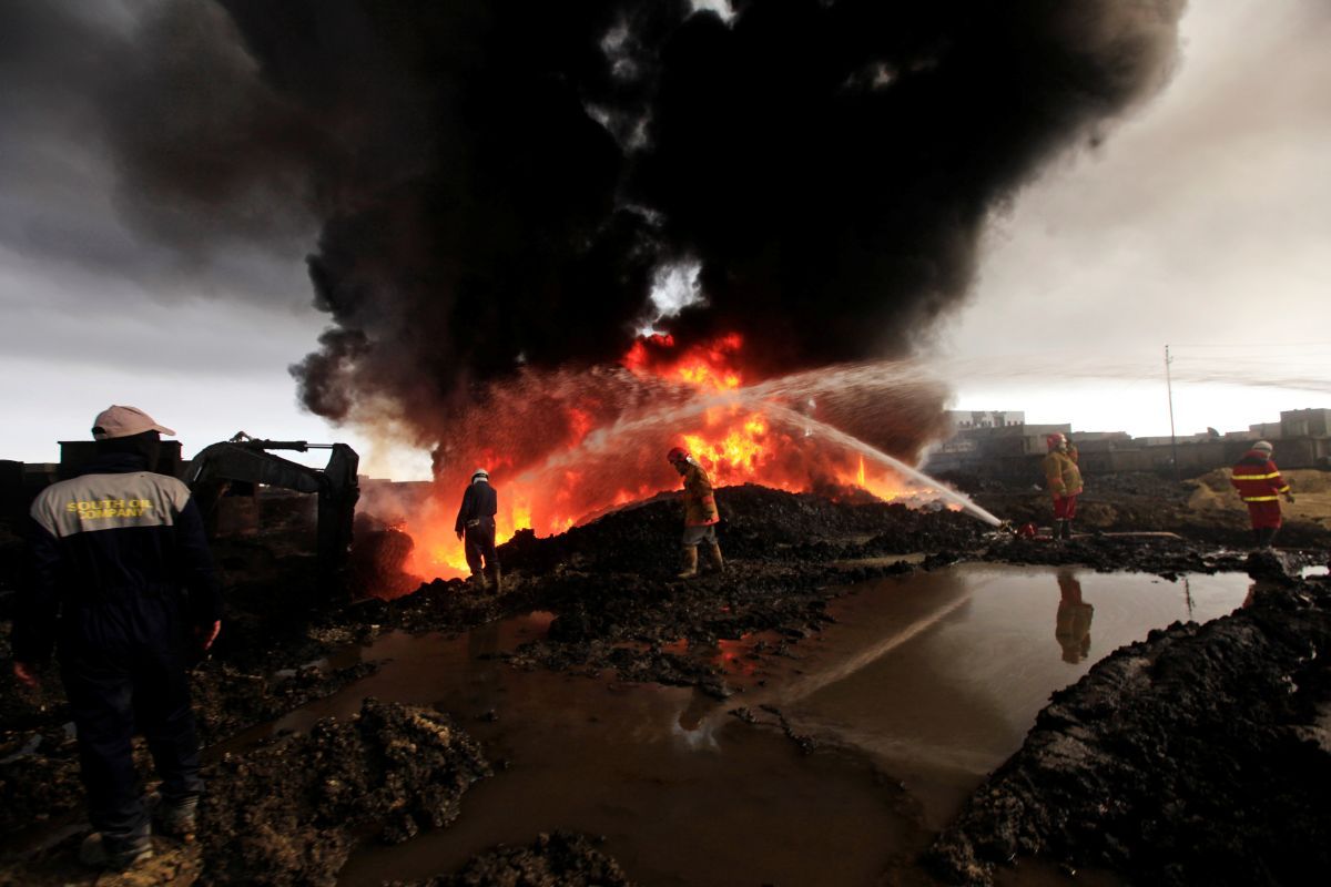 Боевики ИГ продолжают контролировать шесть нефтяных скважин в пригородах Мосула, и есть опасения, что они могут также поджечь и их.