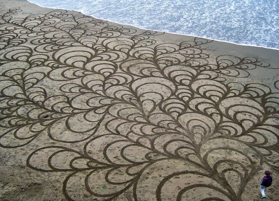 Холстом ему служат песчаные пляжи, пустыни и даже замерзшее озеро. Кистью художника являются грабли или обычная палка.