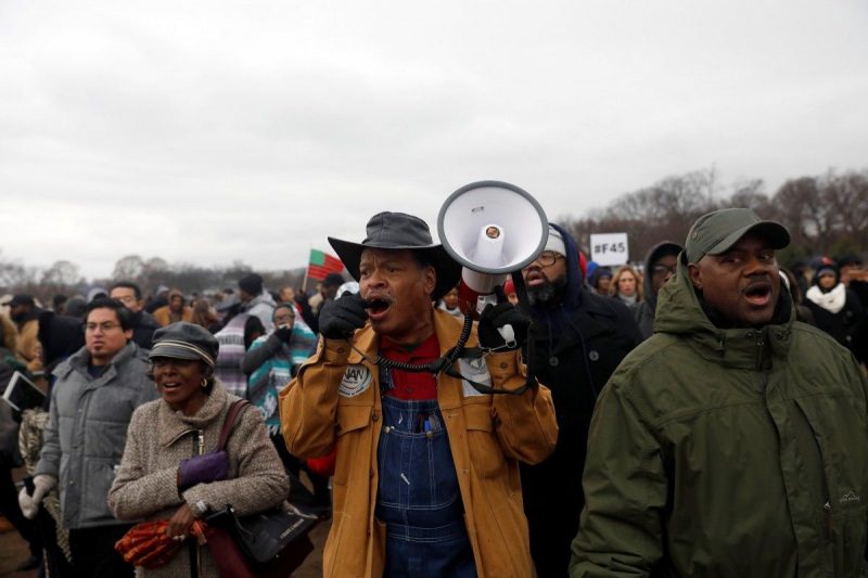 В Вашингтоне возле мемориала Мартина Лютера Кинга собралось около 2 тысяч человек. Лидеры протестующих призвали бороться с отменой реформы здравоохранения, проведенной Бараком Обамой, которую Трамп пообещал отменить, и дискриминацией прав человека.