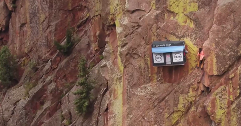 Теперь американские экстремалы могут сделать покупки прямо во время восхождения. В Колорадо на скале обустроили уникальный "подвесной" магазин, сообщает "ТСН".