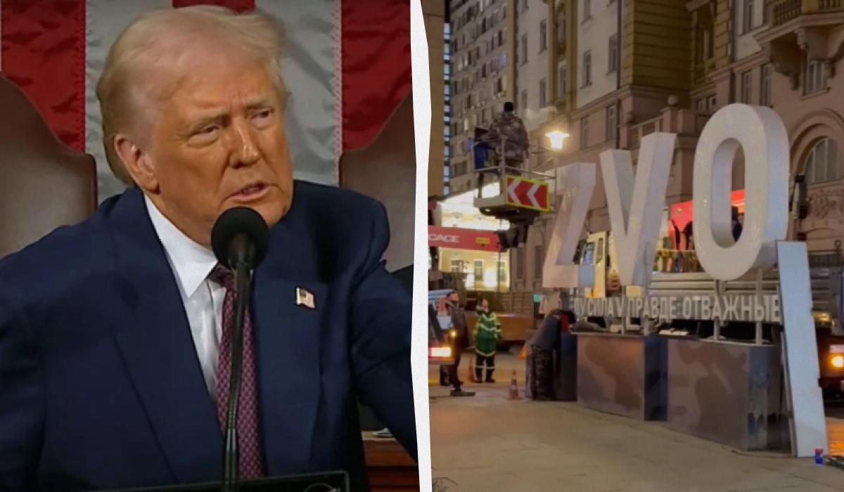 Как сообщают российские Telegram-каналы, работы начались сразу после телефонного разговора американского президента Дональда Трампа и кремлевского правителя Путина. На опубликованных видео можно увидеть перемещение надписей "ZVO" и "Мы вместе".