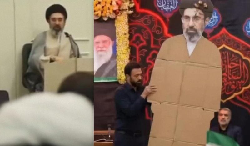 Над отсутствием Хаменеи в публичном пространстве насмехаются противники режима. В соцсетях стало вирусным видео, на котором сторонники Хаменеи приветствуют его картонную фигуру. В ответ государственные СМИ показывают явно сгенерированные ИИ плакаты, билборды и видео, с помощью которых усиливает месседж о преемственности между отцом и сыном. На изображениях Хаменеи часто стоит рядом со своим отцом и Рухоллой Хомейни, первым верховным лидером Исламской Республики.
