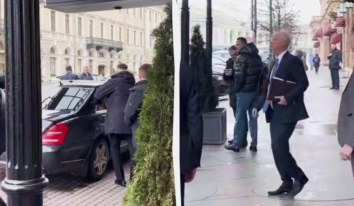 Российские СМИ опубликовали видео, на котором можно увидеть, что представитель американского лидера выходит из отеля "Гранд Отель Европа" и садится в автомобиль. Вместе с ним едет руководитель Российского фонда прямых инвестиций, переговорщик кремлевского правителя Кирилл Дмитриев.