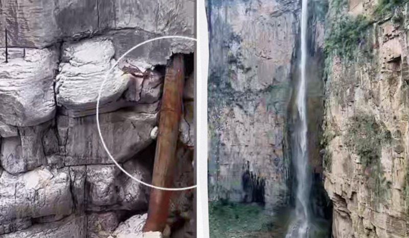 Однако на днях в сети появилось видео, которое свидетельствует, что водопад по крайней мере частично является рукотворным, поскольку поток воды в нем обеспечивает система труб.